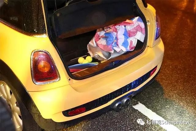 有警员注意到,在汽车后备箱里有2个瘪了的瑜伽球,心想这2个瑜伽球,有没有可能是存储一氧化碳的容器呢?
