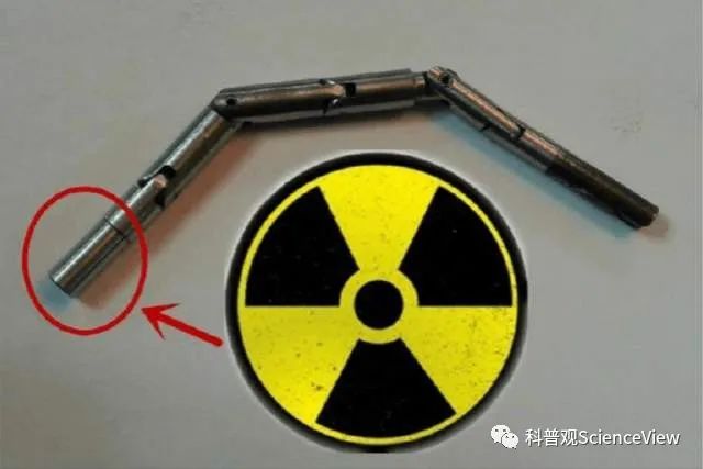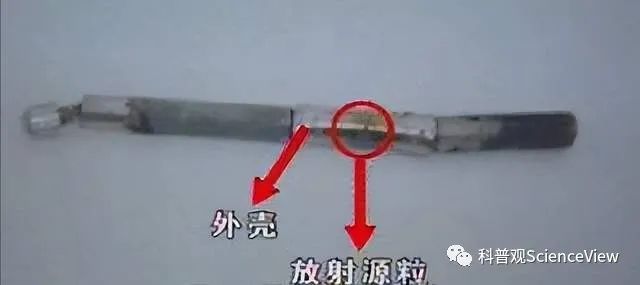 在工业领域,用作探伤设备放射源的铱-192,一般都会被加工成这种“钥匙链”的外形。