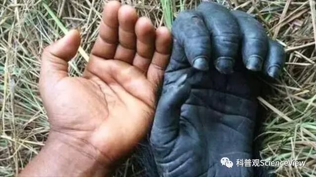 人和黑猩猩手掌的对比图