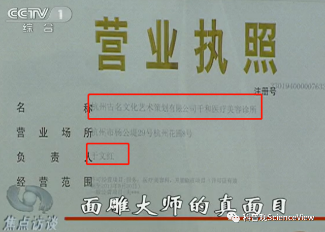 经相关部门查实,于文红“虞美人”旗下一家名为“杭州古名文化艺术策划有限公司”的子公司,也就是前面给李女士做鼻子的公司。