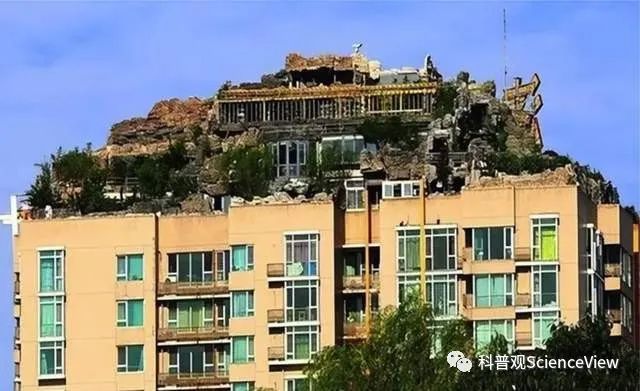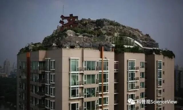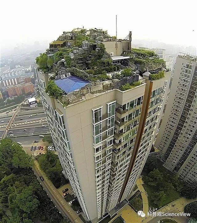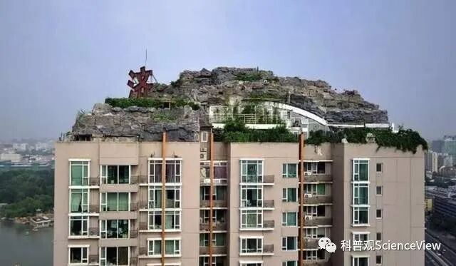 因为楼顶到处都是假山,生怕一阵风刮来,就会把楼顶的假山吹倒。万一有石头从百米高空砸下来,普通人就算带着头盔,也难保不会被石头砸死。