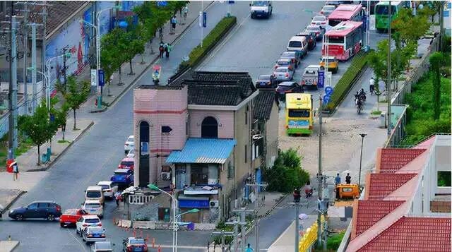 后来,也就有了照片里孤零零矗立在马路中间的小洋楼。