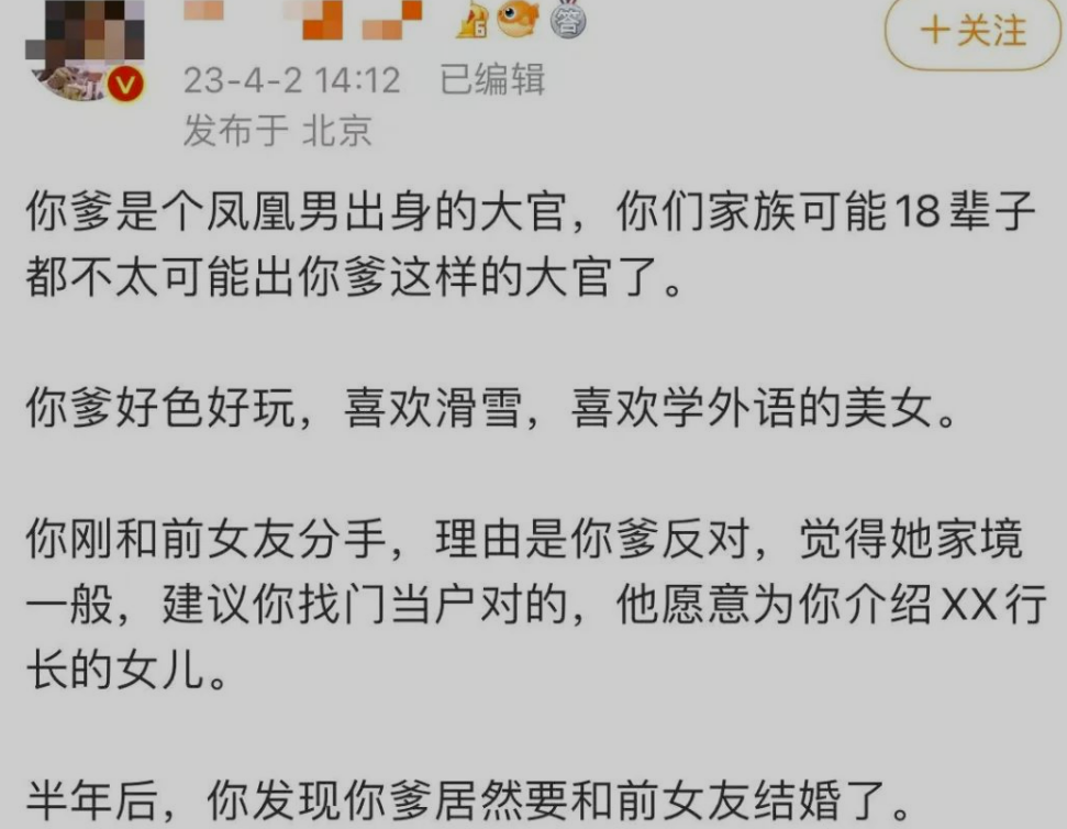看起来似有所指,但后来配合着新闻才恍然大悟,原来是指这位行长的事情啊,怎么这位爷这么不要脸呢,竟然和儿子的前女友成了一条线?