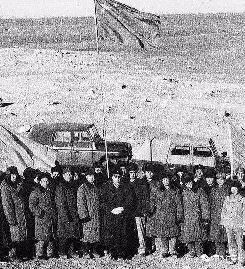 1966年"两弹结合"成功后,梁思礼(左二)、聂荣臻(左五)、钱学森(左四)等在发射场留影