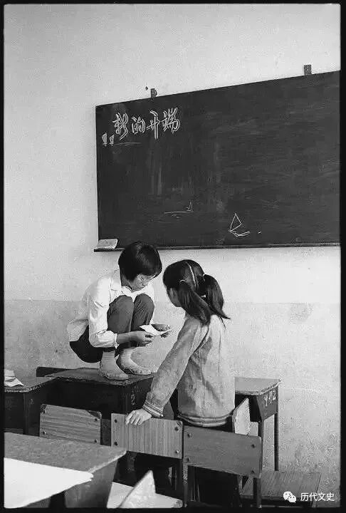 这间教室竟然有吊灯(灯棍),一定是城里的学校吧?我们村学校不记得有这种吊灯。