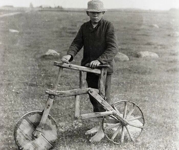 19、1912年,骑着自制自行车的人。