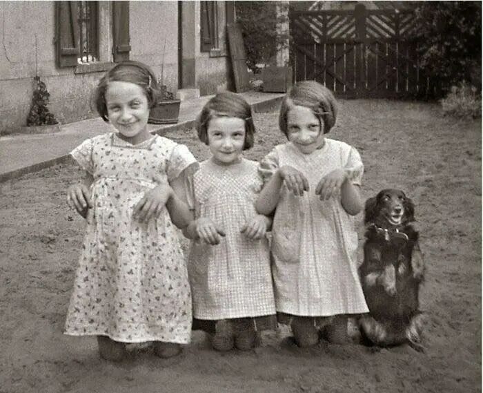 5、1930年,三个小朋友和宠物狗的合影。