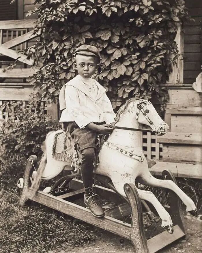 18、1902年,玩摇摇马的小男孩。