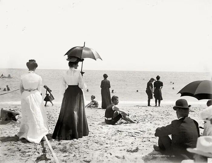 25、1905年,在沙滩上度假的人们。