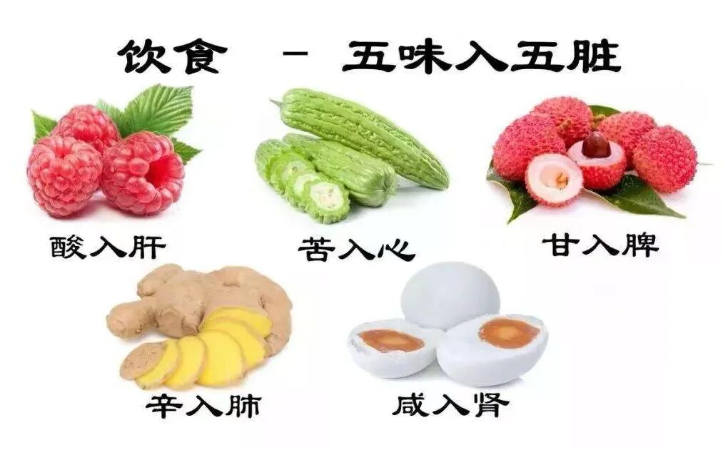 中医上把我们饮食的种种滋味大概分成五种,就是酸、苦、甘、辛、咸。「五味」在这里就代表饮食,说阴气所藏的这些精华就来源于我们的饮食。