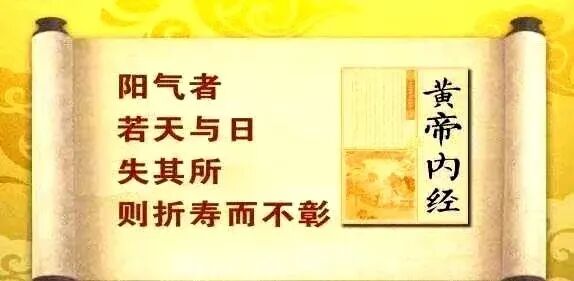 对于我们人来讲,阳气特别重要,就好像对于天来讲,太阳特别重要一样。大家想象一下,如果天中没有太阳那会怎么样——失去了光明,一片黑暗。而且我们知道,月亮的光也是反射的太阳的光,如果没有了太阳,那月亮也不存在了,一片黑暗。阳气对于我们人来讲,就好像太阳对于天一样——特别重要。「失其所则折寿而不彰」,如果失去了阳气,或者阳气不足,就可能会折损我们的寿命,使我们不够健康。所以有的中医讲,养生就是养我们的阳气。养阳气的方法我们也了解一点,比如说多晒太阳,适当地运动(因为动能生阳),还有我们曾经推荐给大家一些动作,做一做补气血的这些动作,气血足了,也会有助于阳气地充盈。