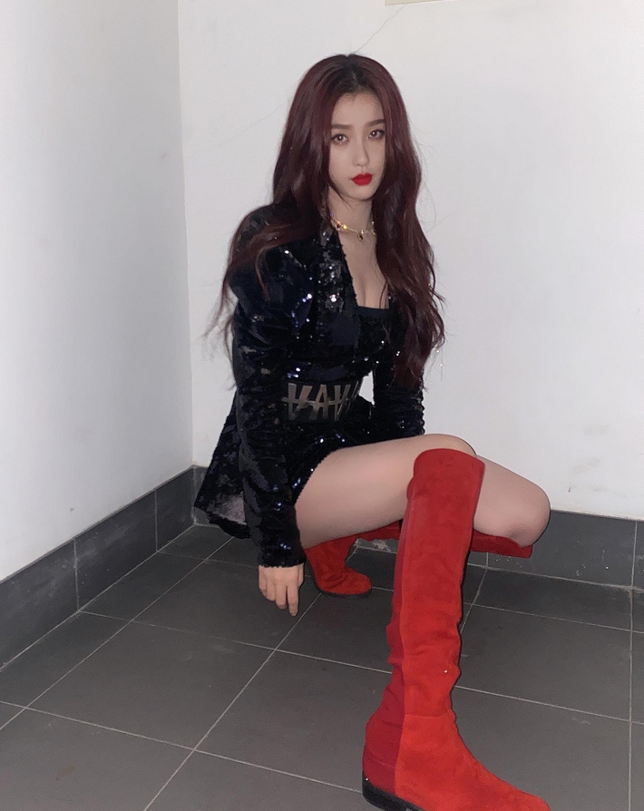 身高1米65,身材比例完美,气质出众,一双修长的腿被誉为“腿精”。她的眼睛又黑又大又有神,眉毛纤细柔美,皮肤白皙光滑,再加上高挺的鼻梁和微微上翘的嘴唇,让她的五官看起来非常精致。