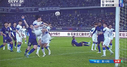 第31分钟,高准翼禁区内处理球时,先用脚踢到球,球打在手臂上。沧州雄狮球员围住裁判,投诉高准翼手球,应该判点球。根据新修订的手球规则,高准翼是“其他部位主动处理球”后,皮球反弹打手,不属于手球犯规。