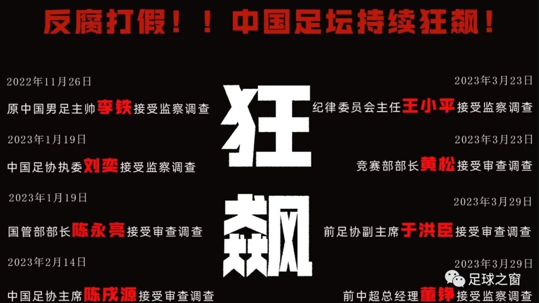 2023年中国足坛扫黑反腐从去年11月就开始了,到今年6月初,已经接近7个月时间,中纪委巡视组在体育总局驻扎一个半月,期限差不多到了。总体来看,本次体坛整顿行动已经基本结束。从已经曝光的名单来看,足协11人被带走调查,中超的山东泰山队成为重灾区,包括主帅郝伟、外援孙准浩、国脚金敬道、郭田雨等4人被抓。