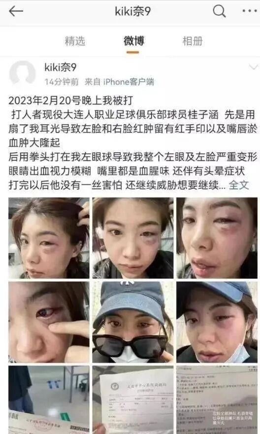 值得一提的是,就在吴兴涵的事情刚过去不久之后,最近中超另外个球队的球员又被曝光出家暴的丑闻,实在是令人大跌眼镜。根据媒体的报道,最近大连人球员桂子涵的女友在社交平台中晒照,哭诉自己遭到男友的暴打殴打家暴,而且她还说相关部位已经淤青,看起来伤情挺重还是比较难受的。