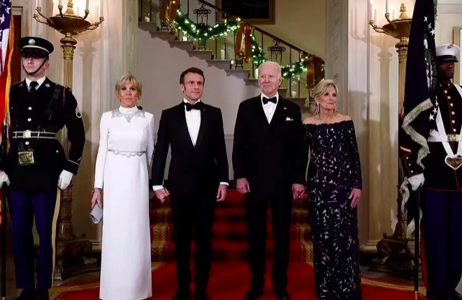 当时,布丽吉特身着一身白裙亮相,看起来极具魅力。而美国第一夫人吉尔更加大胆,穿着露肩裙展现出美丽的肩颈线条。