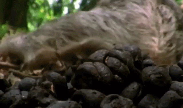 这些家伙大部分时间都待在树顶上,大约每周只离开一次上厕所。妈妈们甚至在挂在树枝上的时候分娩。新生儿然后爬到妈妈的肚子上,在那里待上几个月。