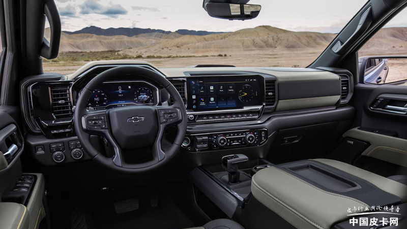 车辆内饰的变化非常大,中控台采用了更加平直的造型设计,与现款车型圆润的中控造型形成了很大的反差。而中控台上方的线条突起处理,仍然使其保有分明的立体感。在LT以上级别车型当中,加入了12.3英寸液晶仪表以及13.4英寸多媒体屏幕,车辆的科技感得到了充分的提升。