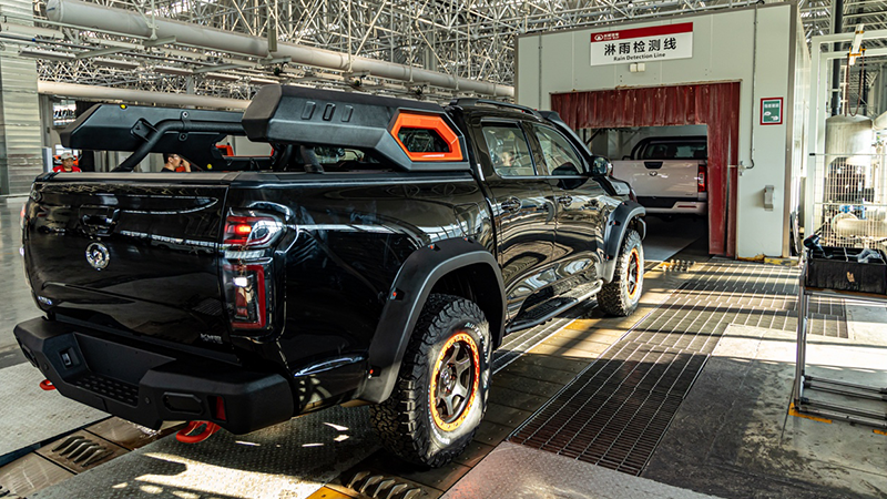 从量产车下线的那一刻,便印证了长城炮黑弹此前的承诺:新车在造型上与之前的展车几乎完全一致,保持了那个霸气威武的硬派设计造型。除了前后保险杠上方灯组的细微变化,长城炮黑弹量产车型与之前的展车基本上就是一个模子刻出来的。