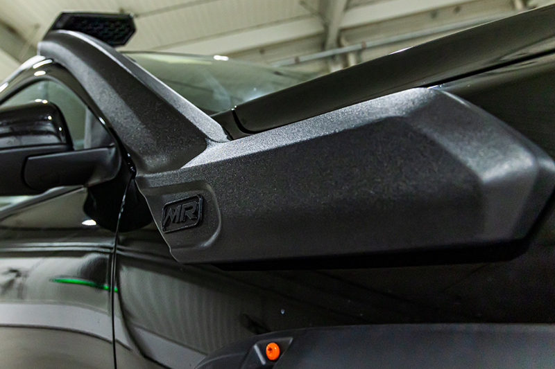 涉水喉在很多品牌的越野版车型中均有配备,不过,长城炮黑弹所安装的这套MR涉水喉,不仅具有防水能力,还可以利用合理的造型设计降低风阻,从而减少车辆在行驶中的噪音。