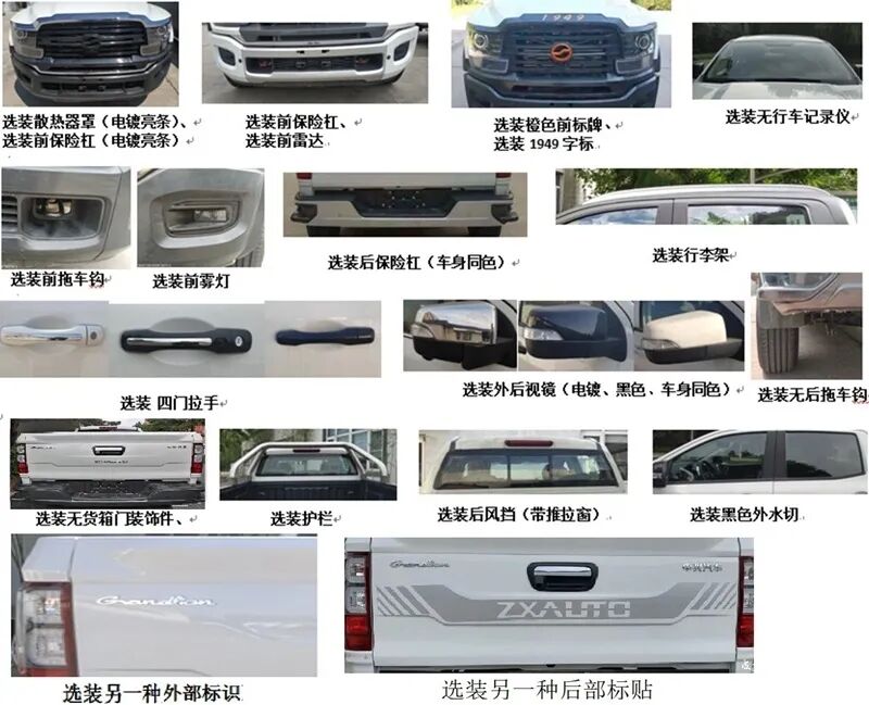 车尾部分也有多种样式的货箱门装饰件可以选择,另外行李架、车门拉手、后视镜装饰、货箱护栏等均是区分不同款式的配置。值得注意的是该车后窗还可以选装推拉窗,这在国内皮卡产品中尚属首例。另外在尾门处带有疑似“Grandleo”的标识,或将该车定名为威狮系列。而从前不久上市的威狮G7猜测,该车很有可能会命名为威狮G9。