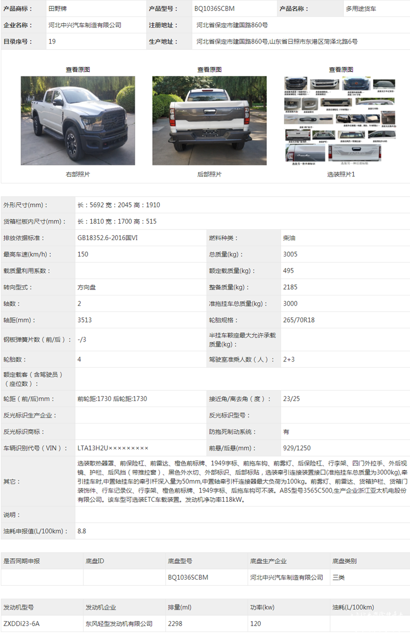 总体来看,中兴这款全新皮卡也有几分亮点:首先是配备后窗推拉窗,方便后排乘客从货箱处拿取物品;其次是3吨的拖挂资质在国内皮卡中也比较少见;而据之前报道,该车还将会配备采埃孚8速手自一体变速箱,以及后桥螺旋弹簧多连杆悬架,这也为中兴皮卡的品牌形象提升不少。