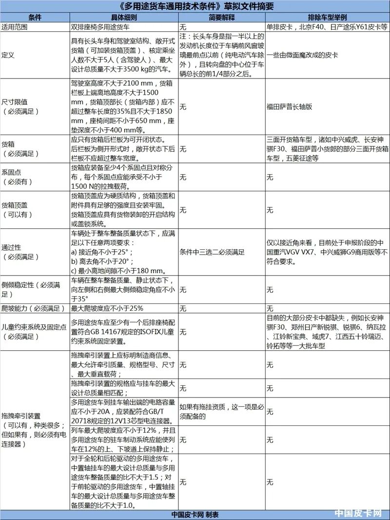 介绍了这么多,但要再次强调一下,目前我们所获取的这个《条件》只是接近即将发布的版本,最终确定的文件还要等官方通知。不过大家可以参考此文章,看看自己目前拥有的皮卡在明年5月1日之后还能不能够算作“正经的皮卡”。