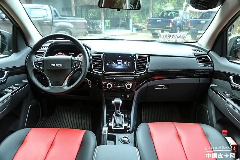 铃拓的内饰在2019年款上市时经过了比较重大的改变,摆脱了与老款D-MAX相同的风格,更加乘用化,趋近于同品牌旗下越野车牧游侠,尤其是中部的8寸MP5大屏具备很多乘用化的功能,诸如GPS导航系统、Carlife&Carplay车机互联、倒车影像等等。另外,多功能方向盘、蓝牙电话、定速巡航、座椅电动6向调节等提升档次的功能也都在新铃拓上配备。