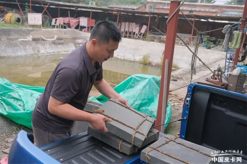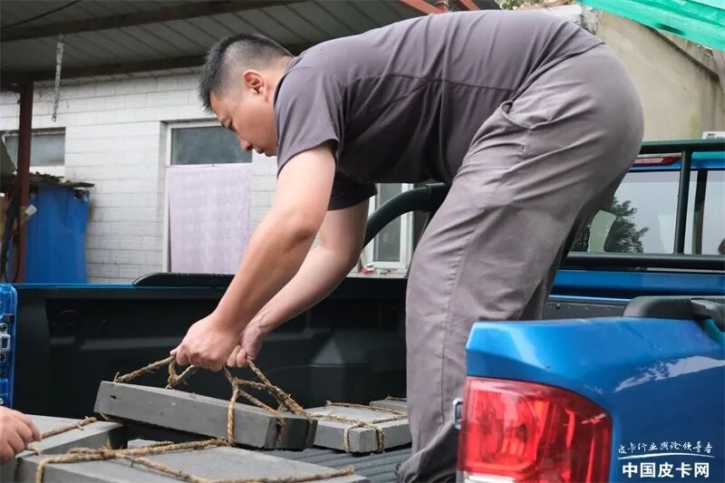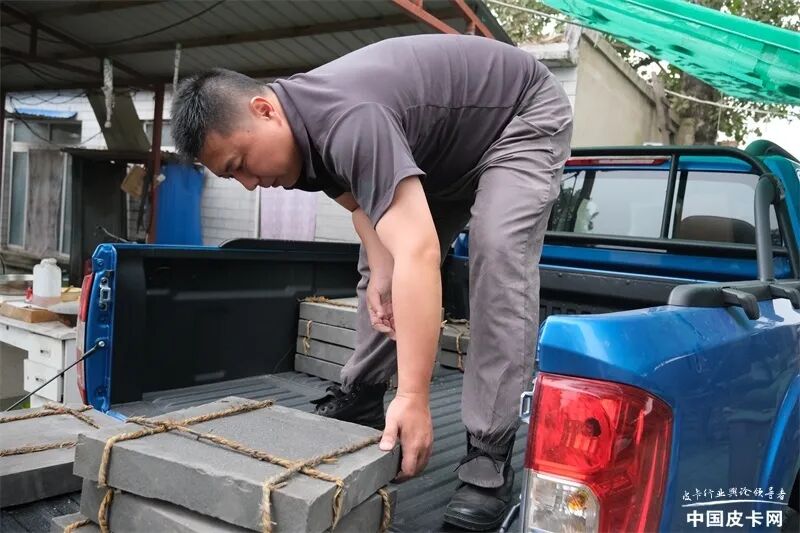 以我的体力,拿起一块青砖容易,但要一捆捆的搬,实在是力不从心。非常悲催的是,我原本以为会有搬运师傅帮忙,而我只需搭把手装装样子,体验一下生活即可。没想到,两边的工人师傅们都很巧妙地外出了,我只能一个人对付这些“沉家伙”。值得庆幸的是,锐骐6平箱版在后杠处设计了踩踏位置,货箱盖打开后也可作为装卸货的延展平台,让我有了借力喘息的机会。