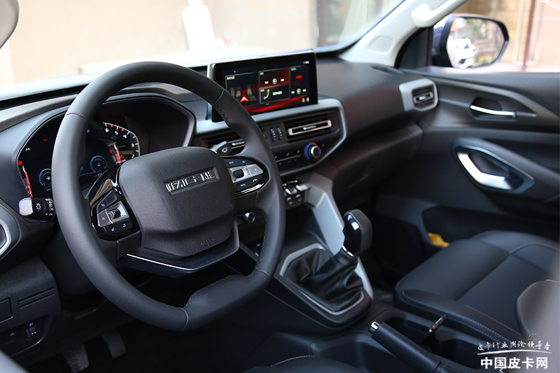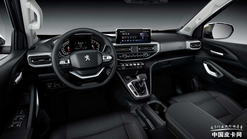 来到内饰,长安凯程F70为你带来了完全乘用化风格的中控设计,车内的整体造型取向,基本上遵照了标致旗下SUV的设计要点,并且很好的与这辆皮卡进行了融合。车内做工十分精致,具有很强的科技感,中控区向驾驶员一侧略微倾斜,操作时更加方便顺手。10.25英寸悬浮式液晶屏幕支持多媒体、人机互联等功能,同时,还支持360度环景影像,并且可以电脑模拟构建出车辆周围环境的3D视图,更加清晰的展示车身周围的环境情况。