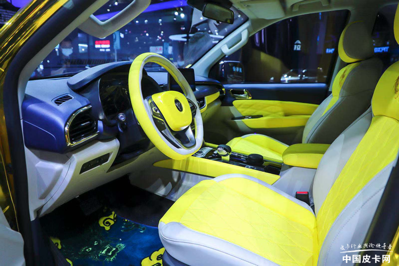 车辆内部,龙腾大将军柴油8AT也与在售车型保持一致,但大量使用金黄色装饰,做到将国潮与科技的融合,更显年轻化、乘用化。中控台层次感分明,最新横向贯穿立体式座舱设计+10.25英寸悬浮式PAD屏,科技感十足。显示屏具备最新4G车联网T-LINK系统+AI智能语音交互,集成手机远程控制,可实现与用户的便捷语音交互;自动恒温空调+电动调节六项座椅,减轻长途驾驶的疲惫感;七色氛围灯,可实现多变场景随性切换;配有可开启式天窗、电动后窗,换气随心所欲,让驾乘更舒适。