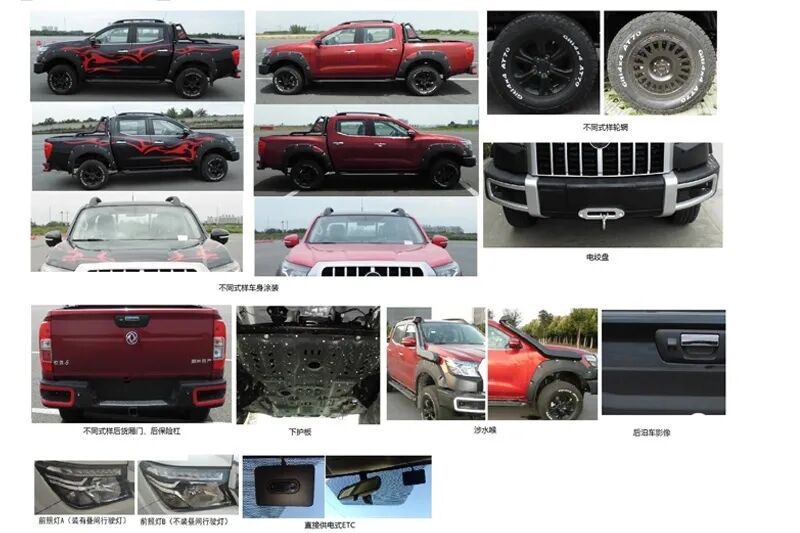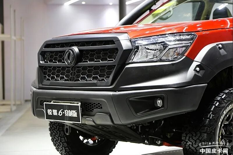 在今年的上海车展上,郑州日产官方曾亮相过一款穿越版锐骐6,与此次曝光车型相比有着较大区别。车展上的穿越版外观部分基于锐骐6普通版打造,前后杠、中网、轮眉均采用了黑色材质,让整车越野气质十足。而整车采用了红底黑条纹的拉花,也相当有运动气息。展车还带有涉水喉、隐藏式绞盘、后拖车口、底盘护板等等,并且换装了氮气减震,底盘部分有所升高。
