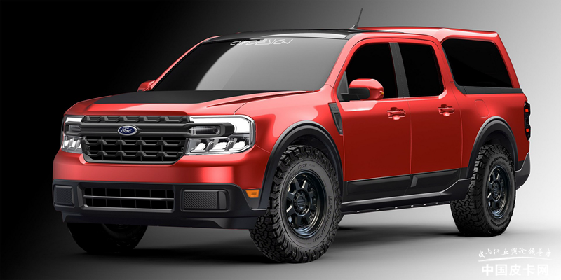这款车基于Maverick的FX4越野款打造,与其他车款不同的是,该车的部分配件由Air Design USA制造,包括轮眉、车门装饰条以及尾门饰板等。整车底盘部分有所改动,采用18英寸轮毂搭配31英寸全地形轮胎,并且进行了大约4厘米的升高。动力采用2.0升EcoBoost四缸发动机,并且配备了catback排气系统。