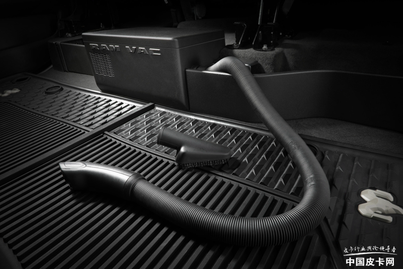 这款车的车内有所变化,官方在车内设计了一个可伸缩的30*36厘米的工作台,主要或为存放电脑等物品。另外该车还配备了一个车载吸尘器,方便在工作之余打扫车内的灰尘杂物。为了体现出与众不同,座椅靠背上还刺绣了Outdoorsman和Mopar标志。