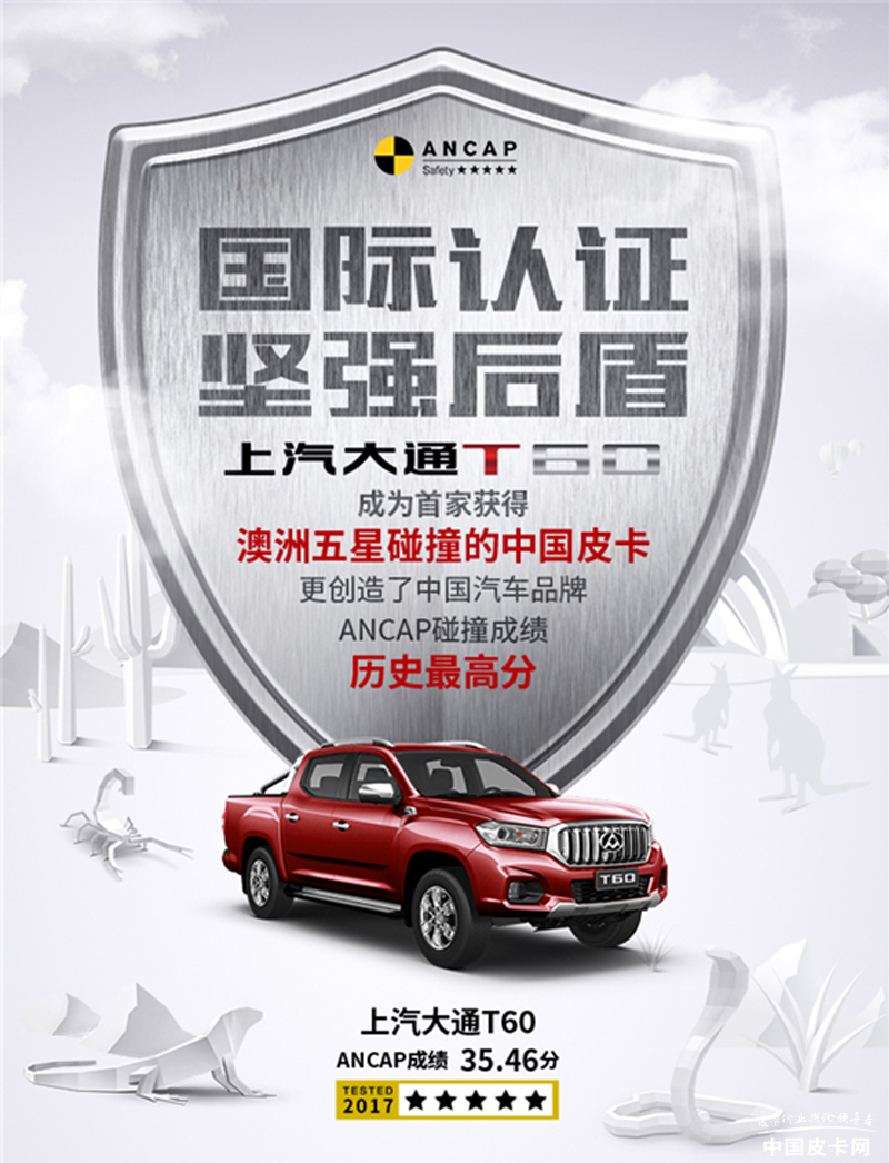 因此,无论上汽大通皮卡销往任何国家或地区,安全性能都是一块永不褪色的金字招牌。而澳洲作为上汽大通皮卡最为重视的海外市场之一,当地的车辆安全评定标准自然对上汽大通有着重要的指导作用。而上汽大通皮卡也确实不负众望,一举夺下A-NCAP的五星安全桂冠,成为国产皮卡在澳洲的安全先驱。