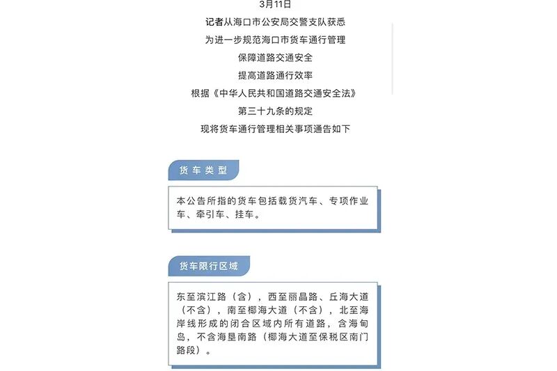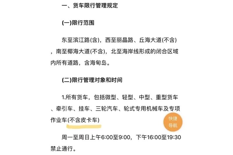 此前,海口对于皮卡的管控措施是这样的: