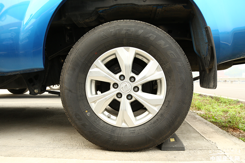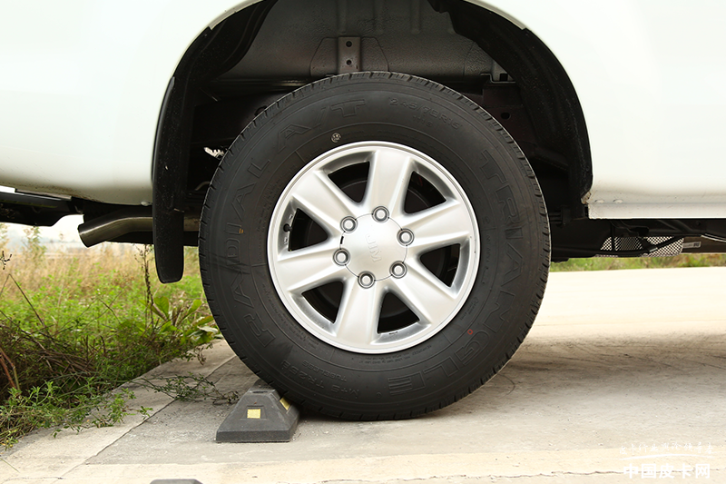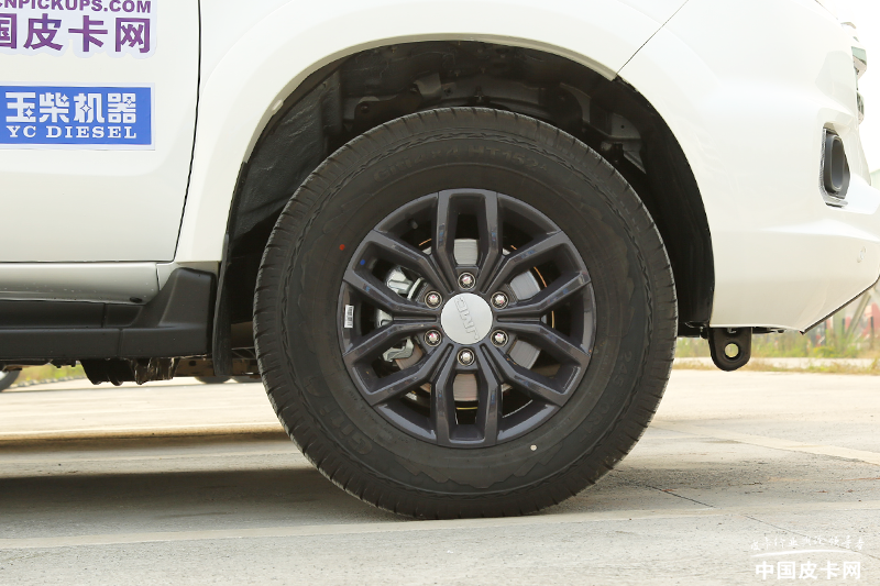 为了保证车辆的承载能力以及实用性能,皮卡往往选配扁平比较大的轮胎。从本次参评的皮卡中来看,此种轮胎确实是目前的主流配置。当然,随着皮卡应用场景的不断丰富,市面上也开始出现了采用相对小扁平比轮胎以及大轮圈配置的乘用皮卡,以及采用越野轮胎和防脱轮圈的越野皮卡等。