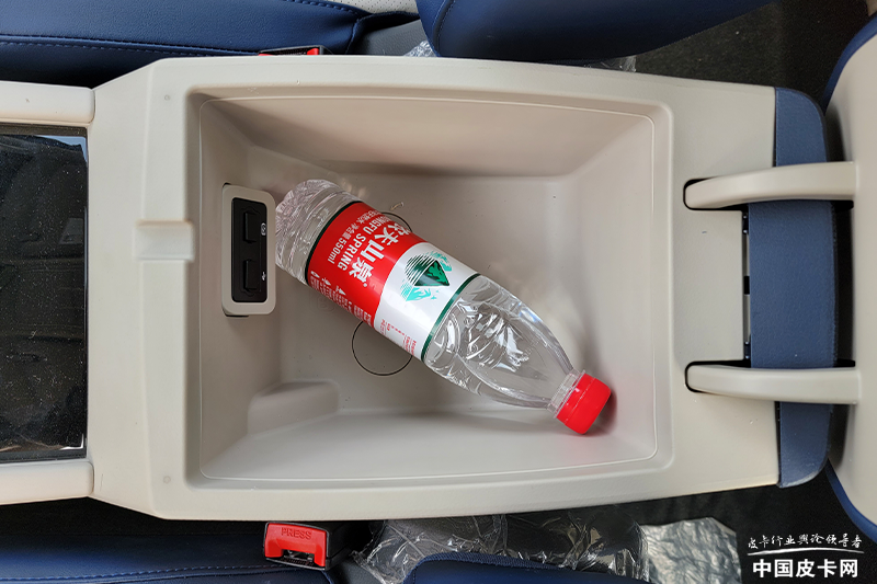 在经济适用组当中,经典瑞迈和征服者5在中央扶手箱空间上的表现较为接近,二者高度均无法容下直立的饮用水瓶,将水瓶倾斜放置后可以完全进入中央扶手箱内部。而五菱征途由于受到车身尺寸限制,在中央扶手区域只设立了两组杯架,储物能力较为局促。