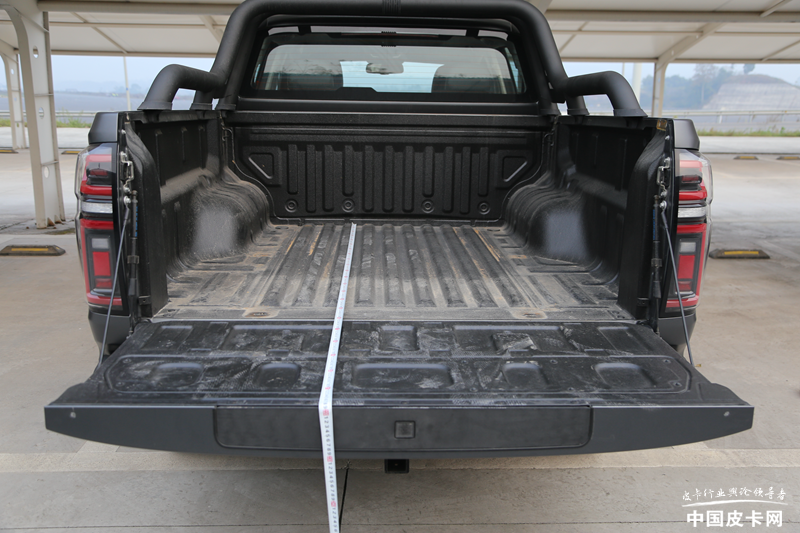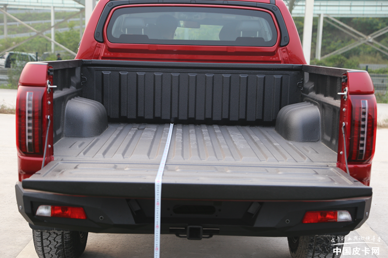 长城炮乘用皮卡全球版的货箱部分其实与前面的珠峰版基本一致,笔者手工测量的时候有细微不准确,相差厘米级别也可以忽略不计。同样,尾门液压杆和蹬车踏板是全球版的亮点。