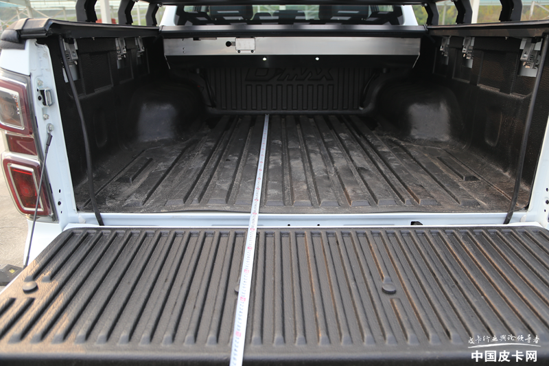 江西五十铃全新D-MAX在今年5月份上市,全系只有一个轴距和货箱尺寸,所以不存在长轴距版车型。参评车型为4×4AT Global 引领型,在原车基础上增加了电动货箱盖,起到了保护货箱物品的作用。