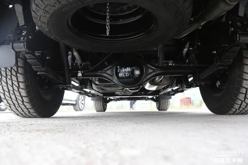 (皮卡车根据不同组别结构,其后桥的上簧和下簧形式也不同。通常来说,整体桥上置可大幅降低车身重心,增加行驶稳定性,理论上还可以增加一定舒适度,但对于板簧的整体厚度有一定的限制。整体桥下置的皮卡车型对于车桥与钢板弹簧连接处的U型螺栓强度有更高的要求,但同时这种结构整体受力较好,也更利于重载,不少硬派越野车也都采用整体桥下置结构。)