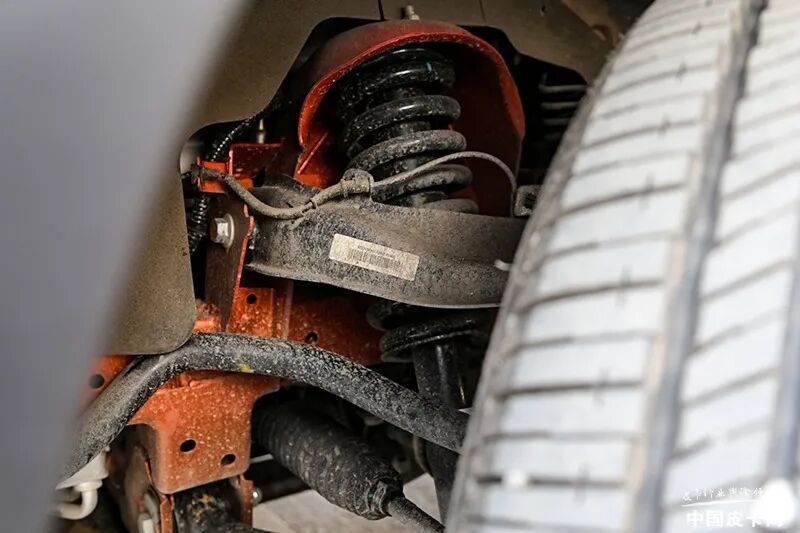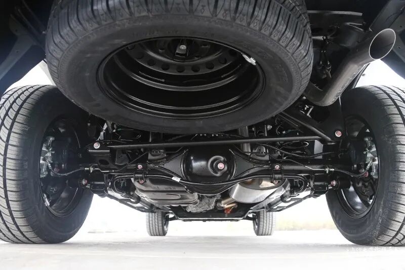 悍途山猫前悬采用双横臂螺旋弹簧独立悬挂,后悬采用钢板弹簧非独立悬挂。该组合是皮卡中较为常见的搭配,兼顾恰当舒适性的同时,可以满足载货的硬性需求,此外悍途山猫版还支持选装后桥差速锁。