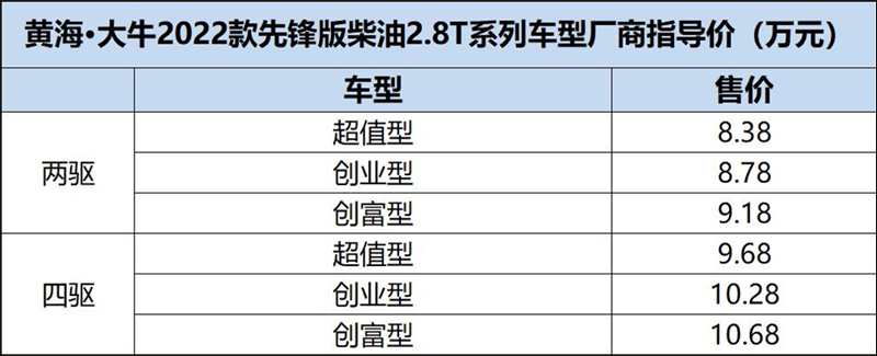 在黄海大牛先锋版上市之后,该车系的车型选择进一步增加,车辆售价则依旧保持了亲民路线,充分保证了车辆的性价比。在工具皮卡市场中,黄海大牛先锋版将凭借着合理的定价和实用的配置,为自己带来充足的竞争力。