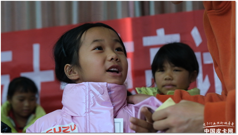 小女孩有着一双深邃的大眼睛,面对镜头显得格外的紧张和羞涩,衣服上有几处脏到洗不干净的污渍。她是家里最小的孩子,衣服和用的一直都是哥哥姐姐们剩下不要的,这次她终于有了属于自己的崭新的书包和文具。跟皮卡网工作人员领取物品的时候,每拿到一样物品,就轻轻地、羞涩的说一声谢谢。她说感谢江西五十铃送给她的礼物,她一定会珍惜这些文具,也会更加用功读书,将来有机会一定要回报社会。