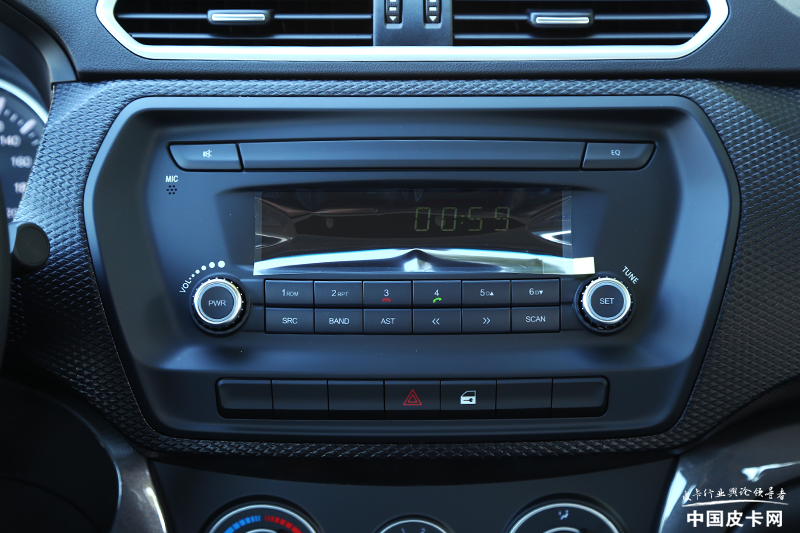 风骏5的内饰设计不算时髦,却也不显陈旧,中控台的造型非常规整,采用了完全对称的布局设计。车内的面板基本上全部采用了硬塑料材质,触感表现中规中矩,结合风骏5本身的定位,内饰的整体质感表现可以接受。而在配置上,风骏5能够满足用户的日常需求,符合其实用皮卡的定位。
