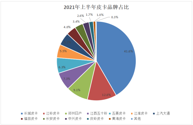 同时,根据中汽协统计,1-6月,排名前五家的皮卡企业销量合计21.6万辆,同比增长37.4%,占皮卡销售总量的76.3%,高于上年同期1.9个百分点,这意味着市场进一步向头部车企靠拢,尾部品牌生存愈加艰难。