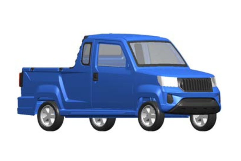 新款皮卡在造型设计上有着自己的独到之处,从图片中可以看出,新车采用了一排半驾驶室以及一体式的车身,可以说,这在目前市场中的皮卡产品里是绝无仅有的。从造型上来看,新款皮卡或将采用非承载式车身,可以使车辆更加紧凑,舒适性更强。重要的是,没有大梁的车身将获得更轻的重量,可以抵消一部分电池组重量对车辆的影响。