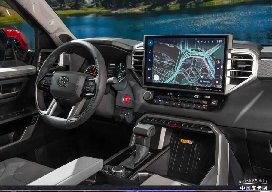 内饰并没有和全新的陆巡保持一致,而是保留了美式皮卡独有的厚重和宽大。除了全新造型的方向盘外,还配备了更加宽大的中央扶手箱、无线充电、超大的屏幕以及更多的储物空间,同时仪表盘或将继续为机械式,当然不排除高配车型搭载液晶显示屏。同时,这一次材质相较之前有较大的提升,提供更强的豪华感。