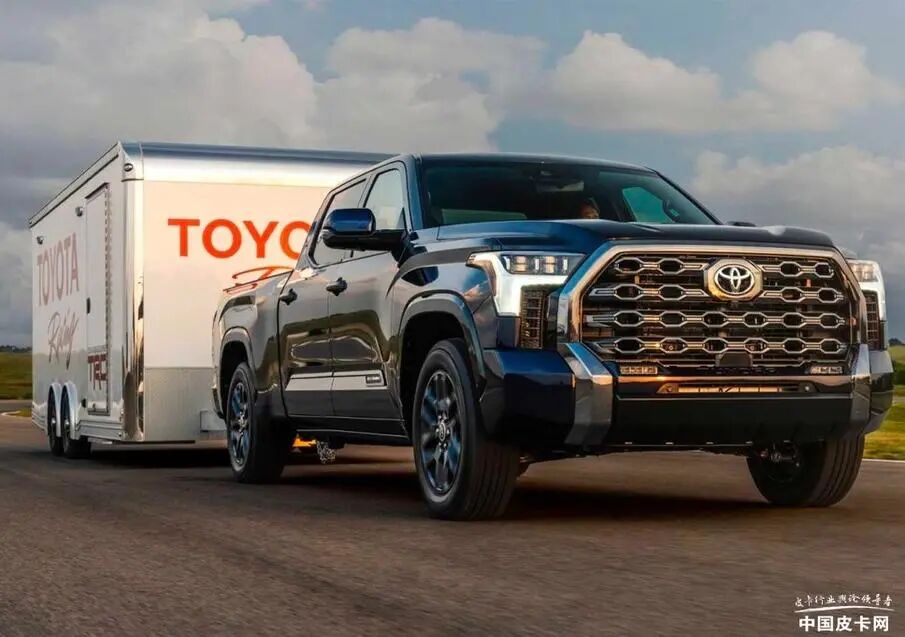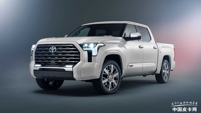随后,丰田汽车发布了2022款丰田坦途Capstone车型,Capstone意为顶点,是全新坦途系列最高端豪华的版本,对标福特F-150 LTD、GMC Sierra Denali等奢华车型。