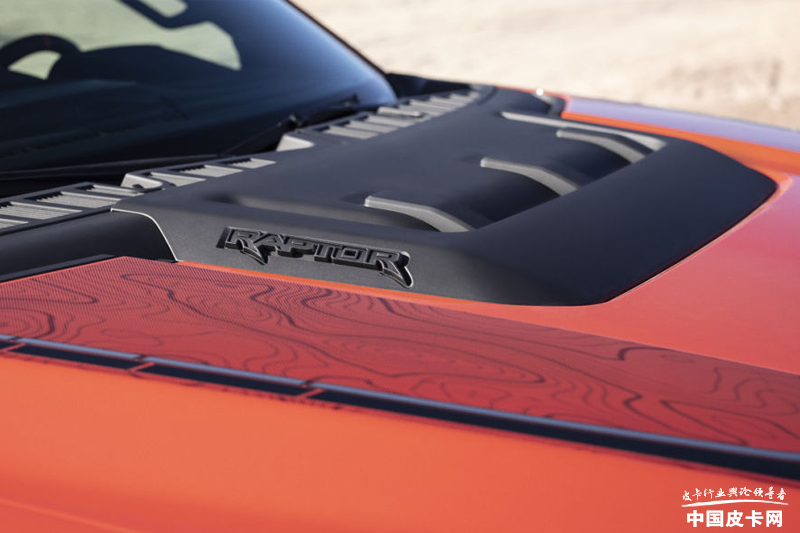 福特F-150猛禽采用了高功率版本的3.5 升 EcoBoost V6汽油发动机,其最大功率为450马力,最大扭矩691牛米,并搭配10速自动变速箱。这套动力总成可以用5秒出头的时间将车辆从静止加速至100公里每小时。而为了满足用户的越野需求,全新福特F-150猛禽在底盘方面做出了较大升级,新车的五连杆后悬架加入了超长的拖拽臂,后悬架采用了新款Fox 3.1英寸减震器,并且配备了4个24英寸的螺旋弹簧,可以进一步提升车辆底盘的通过能力。